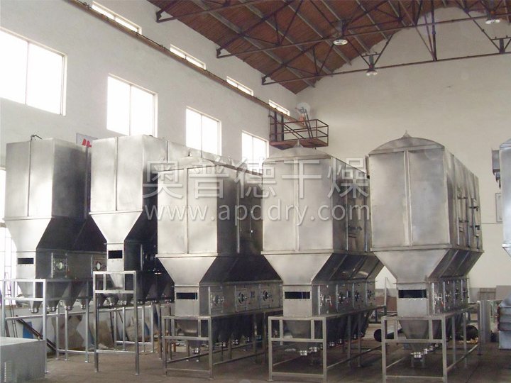 潔凈的熱風經閥板分配進入床體內,從加料器進入的濕物料被熱風形成沸騰狀態。由于熱風與物料廣泛接觸,增強了傳熱傳質的過程,因此在較短時間內就可干燥。如用連續型,物料從床體的一頭進入,經過幾十秒至幾分鐘沸騰干燥,自動從床體另一頭流出。本設備一般進行負壓操作。